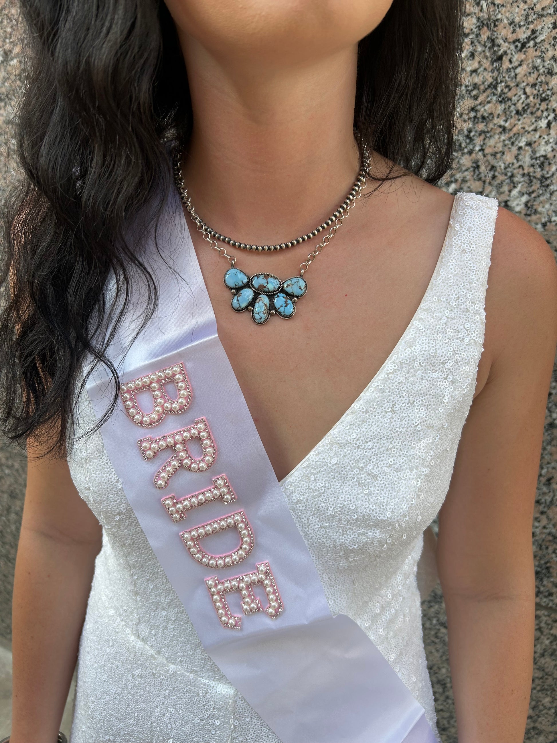 This big statement piece is beyond beautiful. Made of sterling silver and high-grade golden Hills turquoise, On a 18 inch chain
