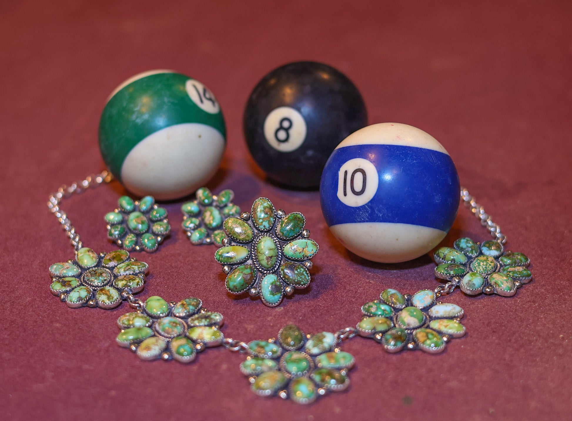 adjustable ring sizes 7 1/2-9 1/2. Cluster stud earrings.
