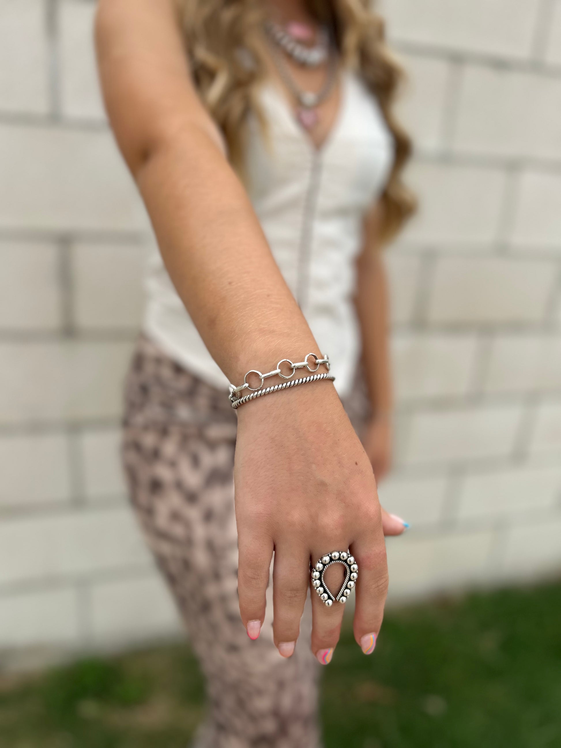 This solid twisted wire cuff is the perfect everyday stacker. Made of sterling silver, It is 6 inches long
